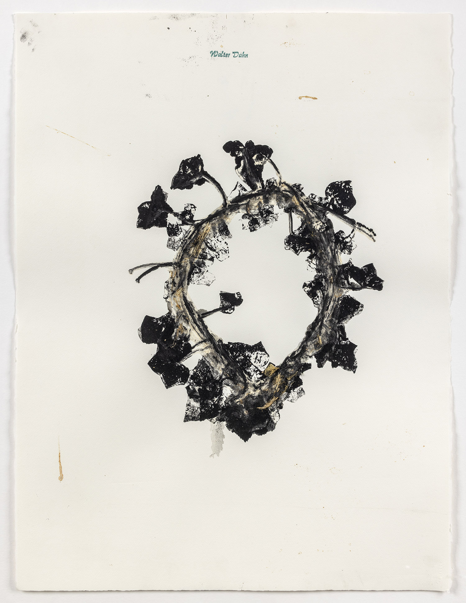 Öl und Pflanzenreste (Efeu) auf Bütten, ca. 74,8 x 56,4,8 cm